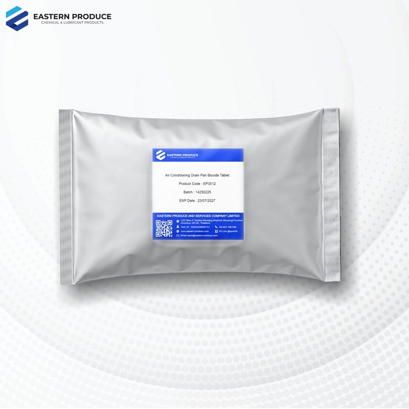EP3512 เป็นก้อนยับยั้งเชื้อรา แบคทีเรีย และเมือกชีวภาพ (Biofilm) สำหรับใช้ในระบบถาดรองน้ำทิ้งของเครื่องปรับอากาศ โดยเฉพาะในระบบที่มีน้ำควบแน่นสะสม และเสี่ยงต่อการเกิดกลิ่นอับ เชื้อจุลินทรีย์ และการอุดตันของท่อระบายน้ำ ถูกออกแบบให้ใช้งานง่าย เพียงวางก้อน Biocide Tablet (ไม่ต้องแกะตระกร้อพลาสติกที่หุ้มอยู่ออก) เพียงวางในตำแหน่งที่เหมาะสมในระบบแอร์ ก็สามารถควบคุมเชื้อรา แบคทีเรีย และคราบเมือกได้ยาวนาน